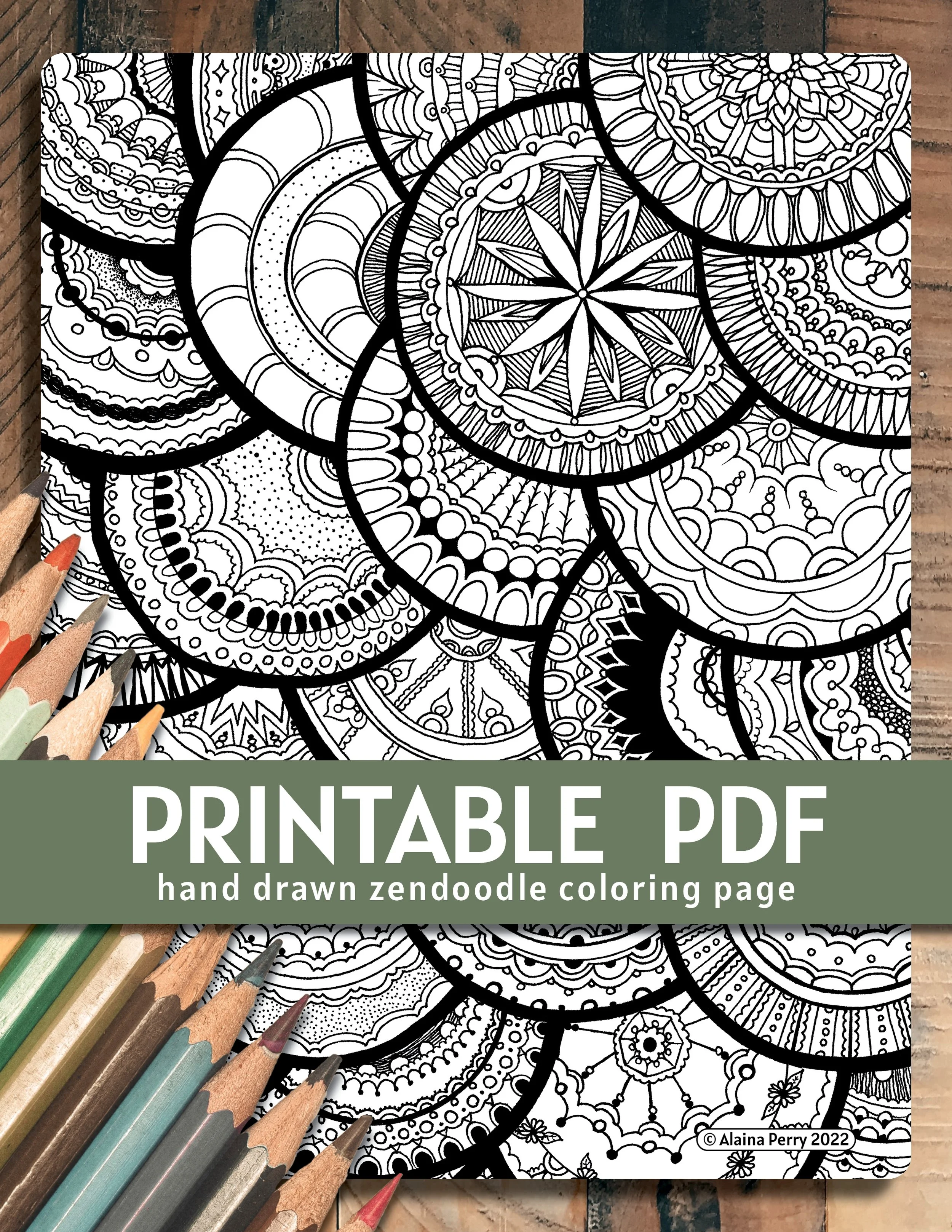 My coloring pages are hand drawn using fine line pens and calligraphy markers. I’ve scanned it in at a high resolution & cleaned it up digitally. This design features a variety of doodles inside of overlapping circles, making them look like a pile of medallions!